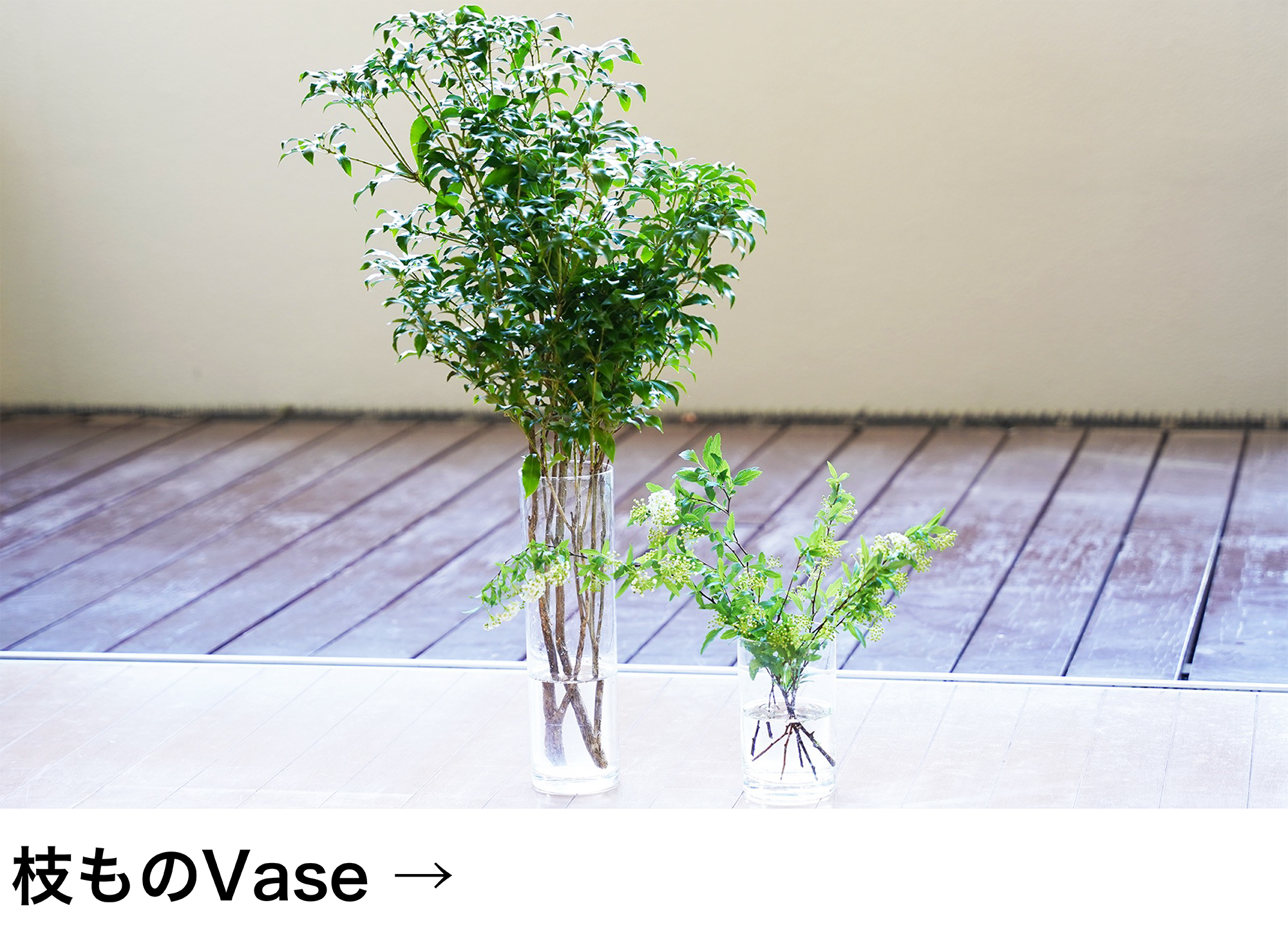 水だけで育てる観葉植物は、切り花を一緒に飾ることができます。植物に合わせてお好みの花を1〜2輪入れるだけで、とても華やかなインテリアグリーンになります。