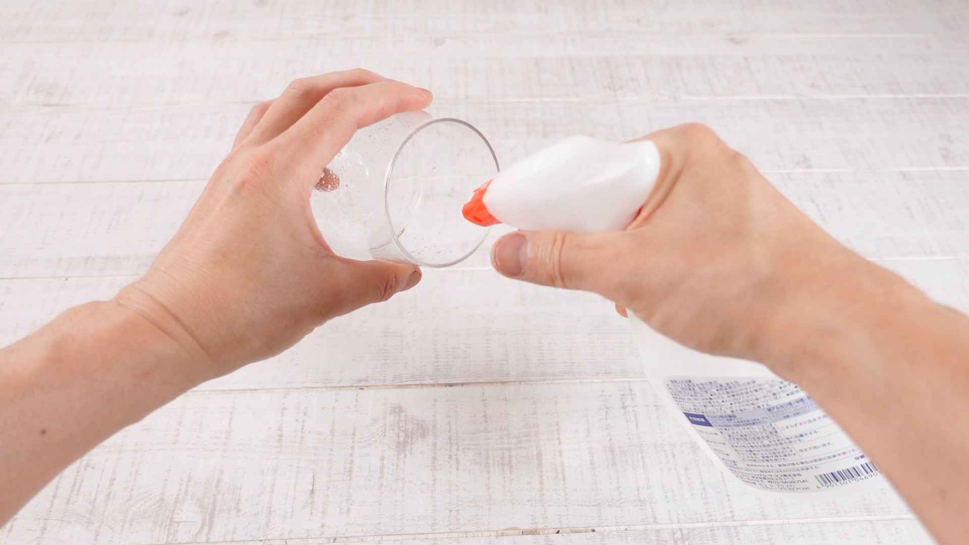 キッチンペーパーが十分に浸かる程度、水を注ぎます。