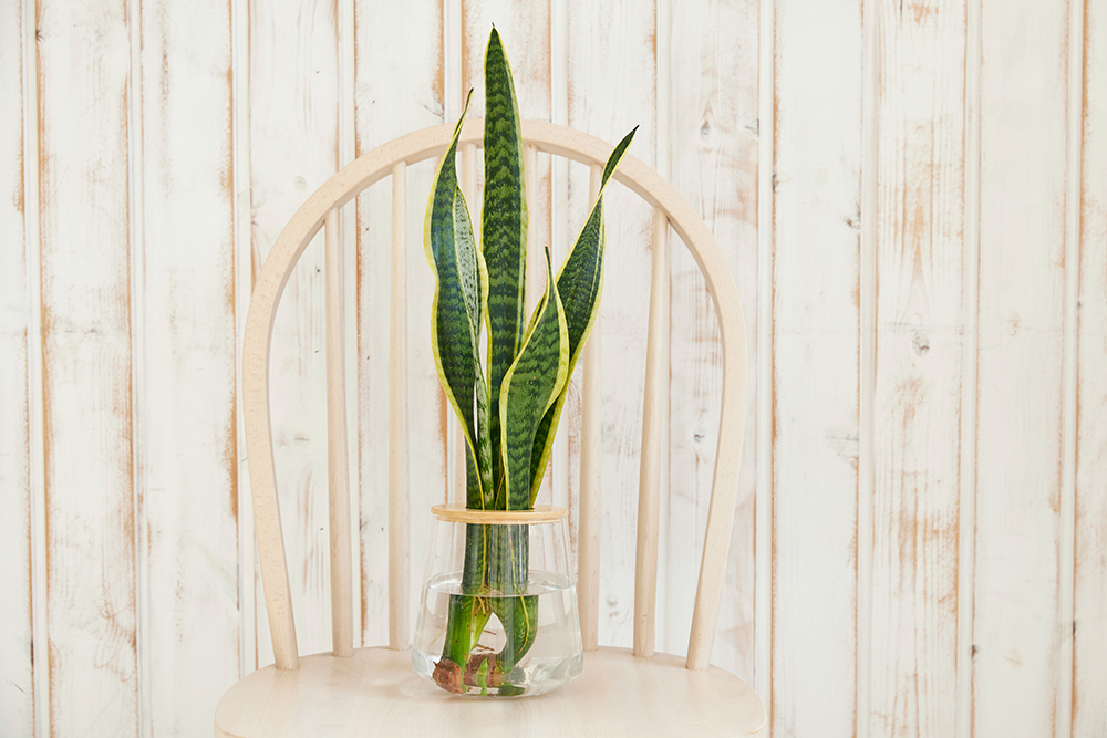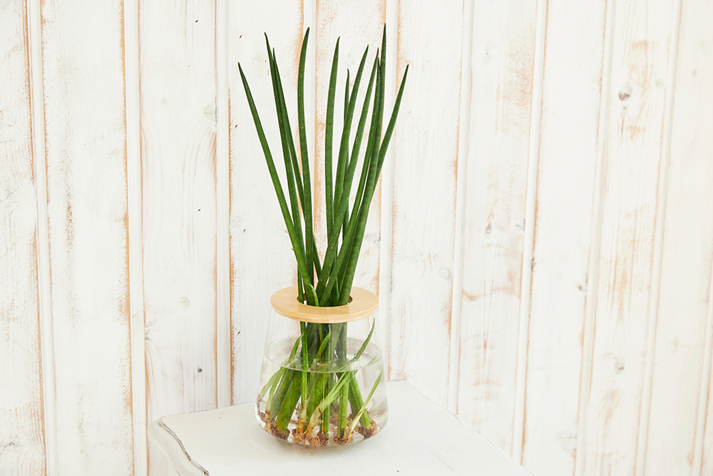 サンスベリアは多肉質の剣状の葉が特徴的で、空気清浄効果が高いことで知られる観葉植物です。ゼラニカ、ハニーバニー、ローレンチー、バキュラリスなど様々な品種があり、それぞれ異なる葉の形状や模様を楽しめます。乾燥に強く水やりの頻度が少なくて済むため、土栽培でも初心者向きですが、水耕栽培にすることでさらに管理がシンプルになります。根腐れしにくい性質を持ち、水の交換さえ定期的に行えば放置気味でも元気に育ちます。室内の様々な明るさに対応でき、玄関からリビングまで幅広く設置できる汎用性の高さが魅力です。風水では邪気を払う力があるとされ、玄関に置くと良いとされています。