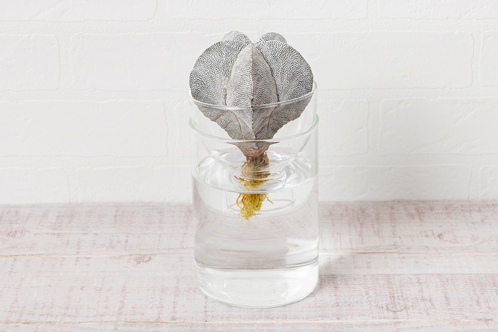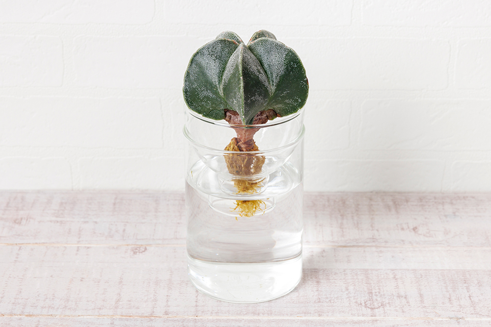 土を使わずガラス容器で育てるため、水の量が一目でわかり、週1回水を足すだけという手軽さが魅力です。室内で清潔に管理でき、虫の心配もありません。玄関やリビングなど置く場所を選ばず、風水効果も期待できる品種も豊富です。