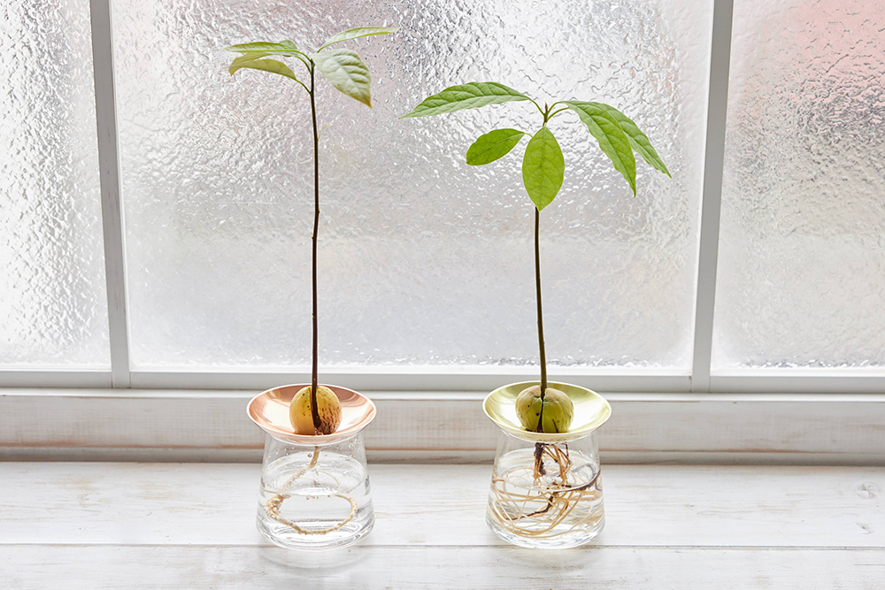 WOOTANGでは、アボカドの種を水耕栽培するための専用容器を販売しており、初心者でも簡単に栽培を始められます。この専用容器は種を安定して固定できる設計になっているため、爪楊枝を刺して支える従来の方法と比べて格段に管理がしやすく、見た目も美しく仕上がります。種をセットして水を入れるだけで栽培が開始でき、根の成長を観察しながら育てる楽しみを存分に味わえます。