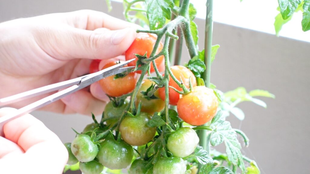 収穫のコツ:清潔なハサミでヘタを残してカット