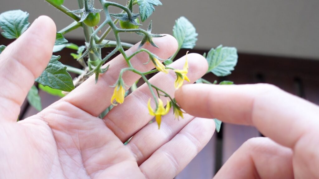 屋外での栽培では風や虫が受粉を自然に助けてくれますが、ベランダや室内では受粉の機会が少なくなります。受粉が不十分だと花が落ちて実がつかないため、開花期間中(1〜2日間)毎日、手を使って受粉させましょう。