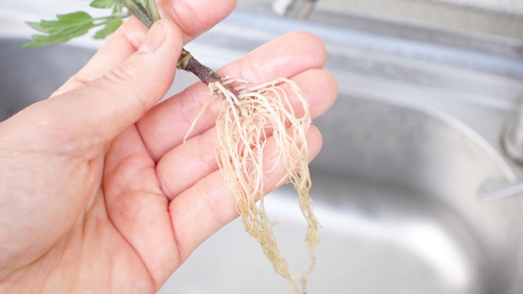 根が白く透明感があり、土の粒が見えない状態になったら洗浄完了のサインです。土が少しでも残っていると、水の中で土壌細菌が繁殖して根腐れの原因になります。手間に感じるかもしれませんが、この工程を丁寧に行うことが、その後の水耕栽培全体の成否を大きく左右します。