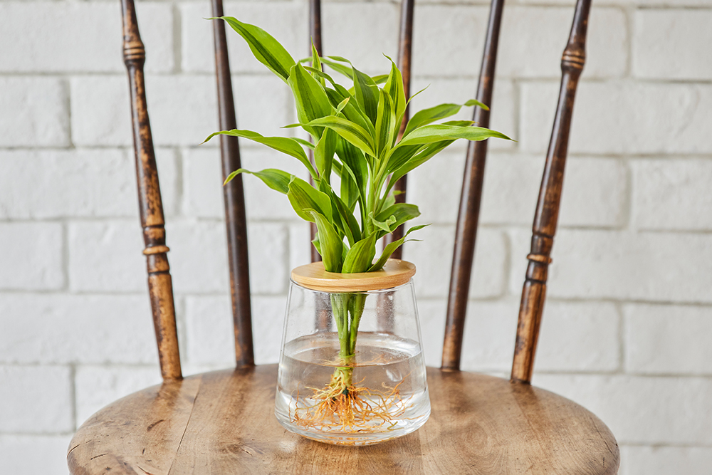 すっきりとしたスタイリッシュな見た目で、和室にも洋室にもマッチする万能プランツ。「幸運を呼ぶ竹」として知られ、贈り物としても縁起が良く喜ばれます。水だけで育つため管理もとても簡単です。
