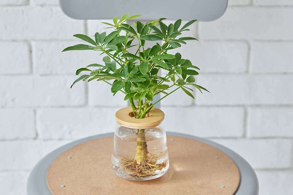 透明なガラス容器で育てるため、根が伸びていく様子が目で見えるのも水耕栽培ならでは。「植物が水の中で育っている」という不思議でおしゃれな見た目は、インテリアとしての存在感も抜群です。